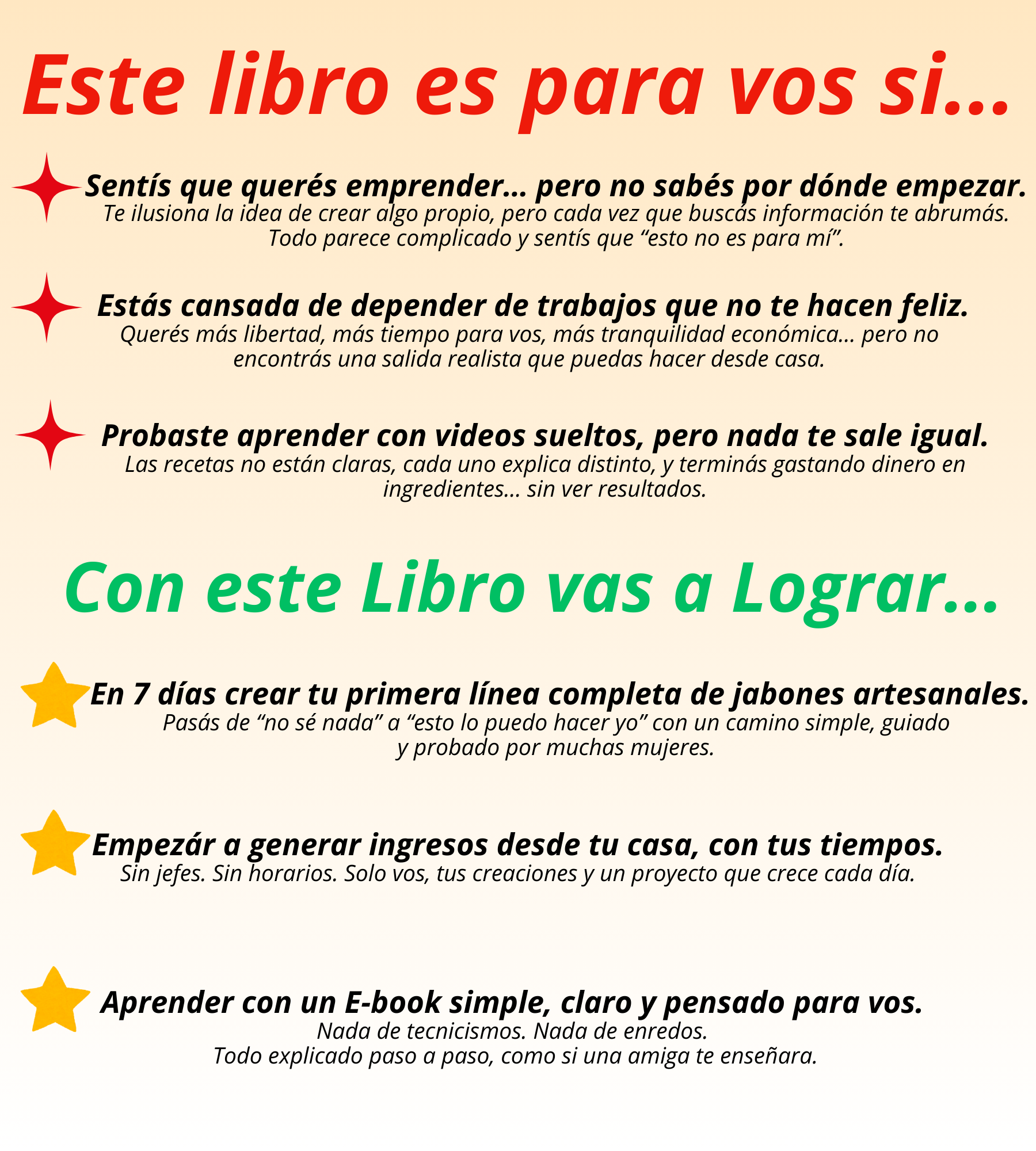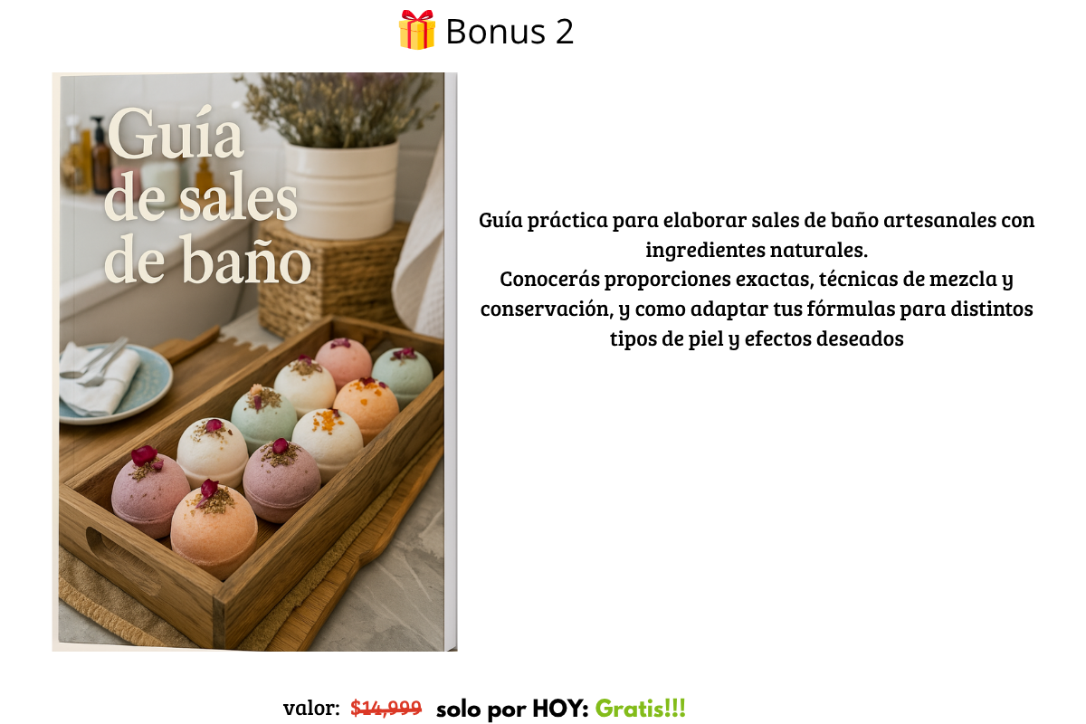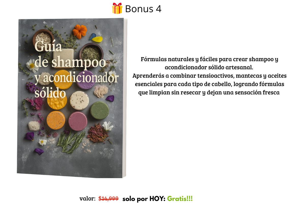 Recibís el E-book Curso de Elaboración de Jabones Artesanales en formato digital (PDF), junto con 9 bonus exclusivos con recetas y guías complementarias para crear tu propia línea natural.